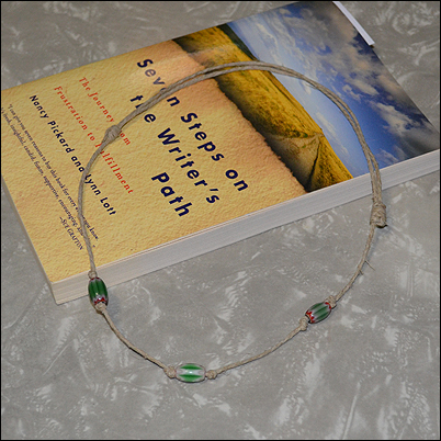 That's right - another throwback. The husband and I used to make these hemp necklaces way-back-when and sell them at various flea markets and events. We gave them the name "slider necklaces" because of the sliding knots that allow the necklace to be slipped over the head and adjusted to the desired length. I still find them complimentary for wearing in the spring and summer with a favorite t-shirt and sandals, especially while behind the wheel of the old VW Bus. As they say, the more things change, the more they stay the same.